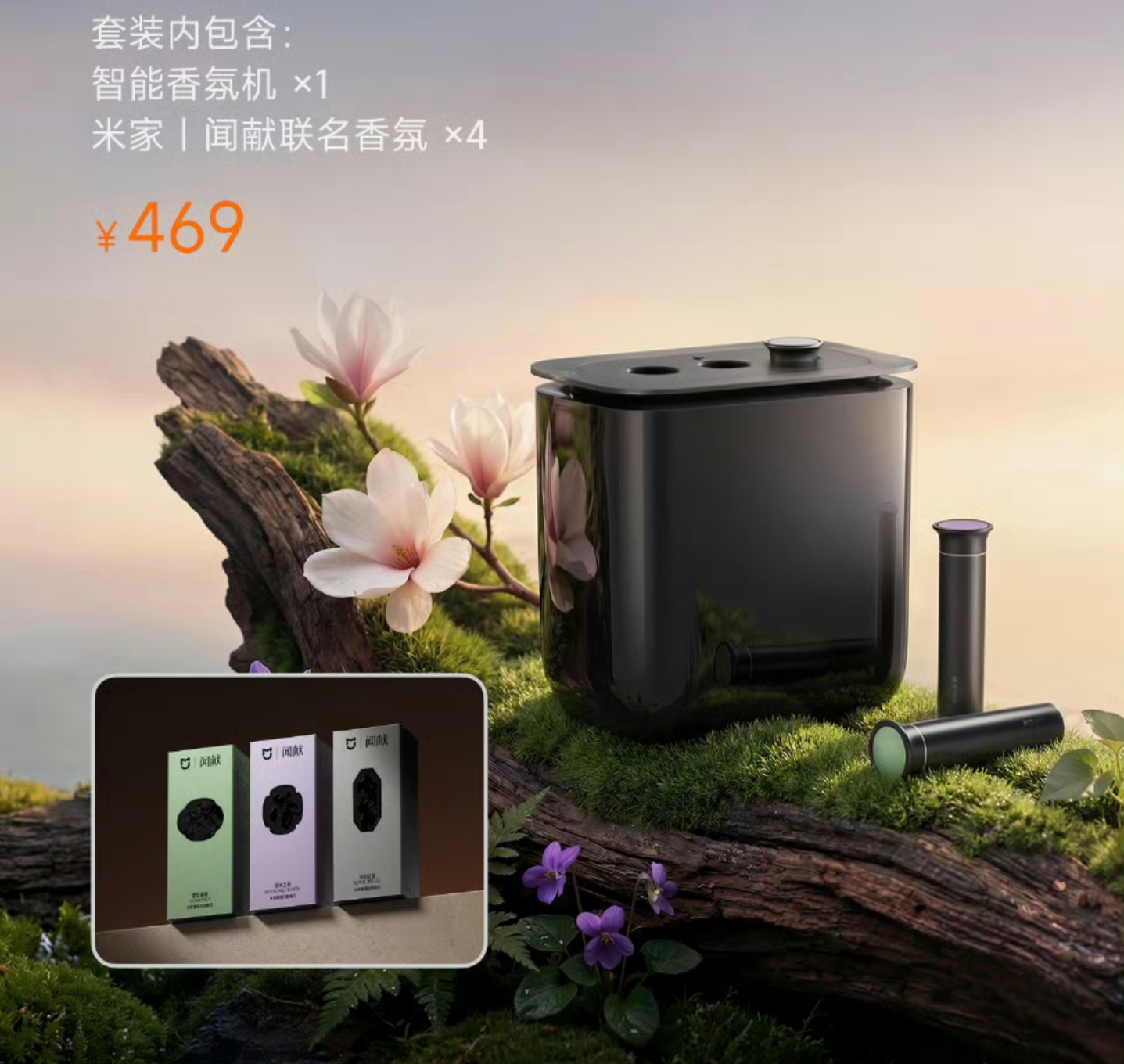 此次合作在商业层面也极具巧思。除了车辆出厂预置外,用户还可花费469元额外购买套装,包含一台智能香氛机与四支香氛替换装。以每支5ml、套装价折算,单支香氛约70元,定价策略兼顾了高端联名的价值感与科技产品的普及性。