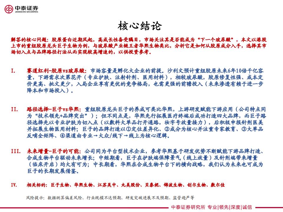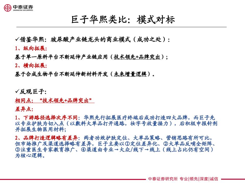 巨子生物、华熙生物类比解读