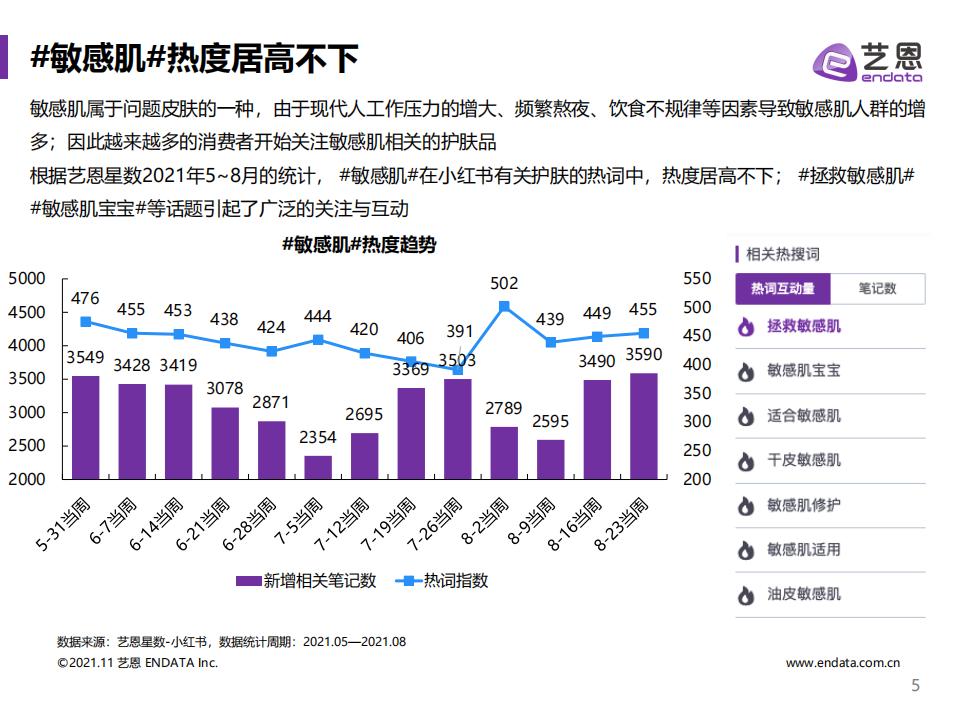 近年来,随着用户消费越来越趋于理性和对于皮肤管理的期待度不断提升,针对某一类效果的功效性护肤品越来越受到消费者的青睐,如美白、抗皱、抗衰老、紧致肌肤等。其中针对敏感肌的产品也在近几年热度持续升高。
