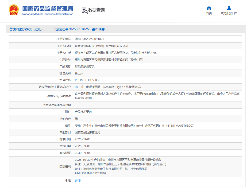2022年,国家药监局发布《关于调整〈医疗器械分类目录〉部分内容的公告》,明确射频治疗仪、射频皮肤治疗仪类产品按照第三类医疗器械管理。自2024年4月1日起,该类产品未依法取得医疗器械注册证,不得生产、进口和销售。