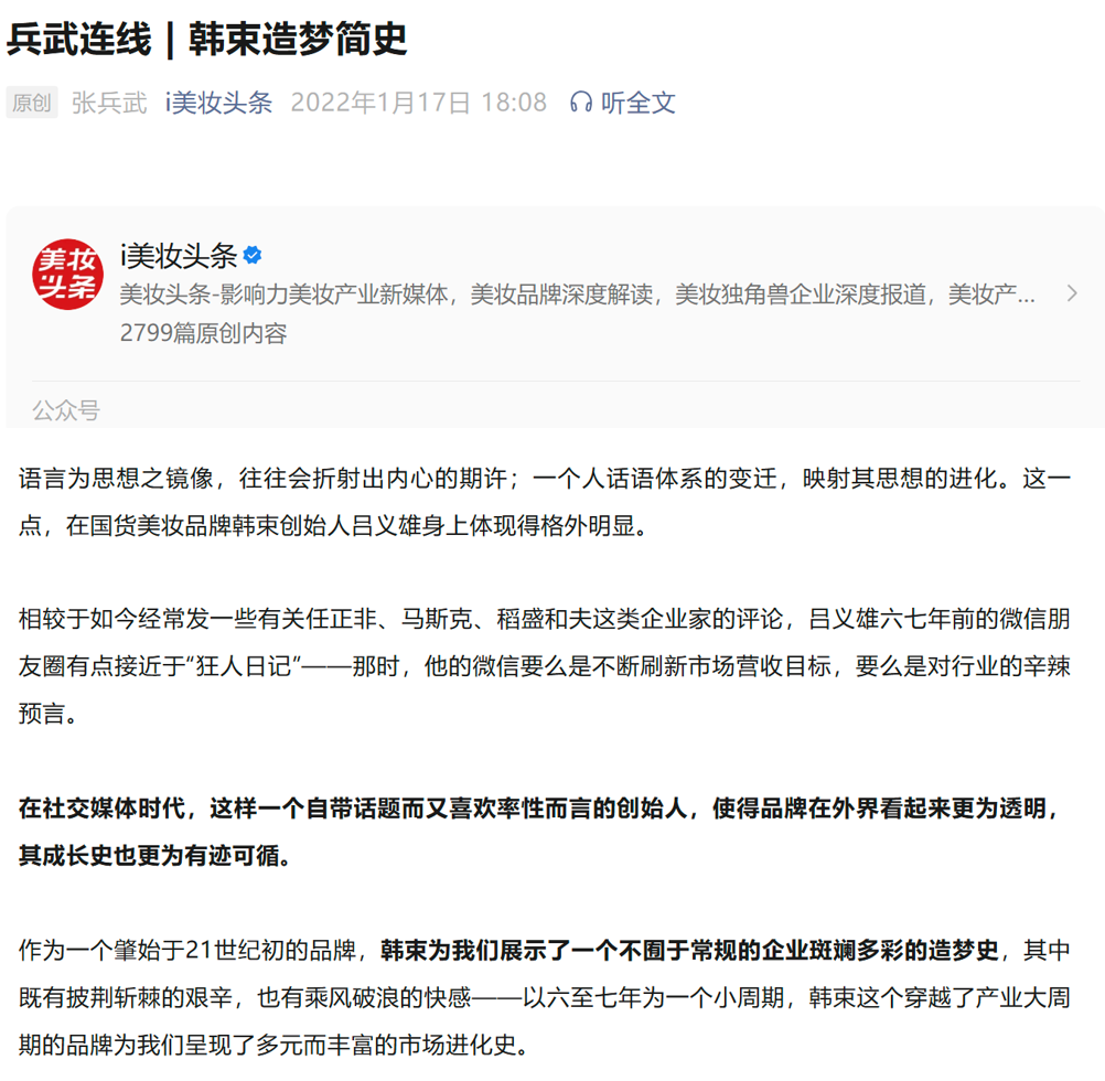 在业内,上美曾经是一个充满争议的企业,即使是在不久前,韩束在舆论方面仍然遭受到了不应有的对待。