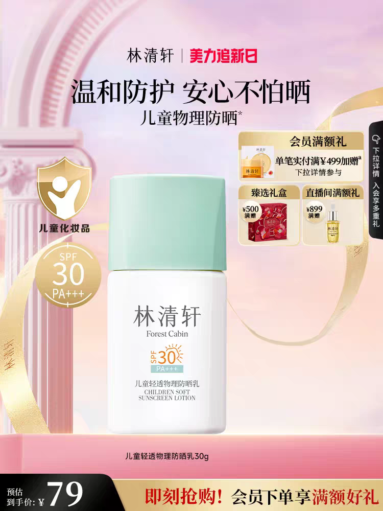 从市场布局来看,这款儿童防晒产品目前已登陆天猫、京东、抖音等主流电商平台,定价79元,这一价格与林清轩成人高端护肤单品形成鲜明反差,处于儿童防晒市场的中高端价位区间,与多个国货品牌形成直接竞争。