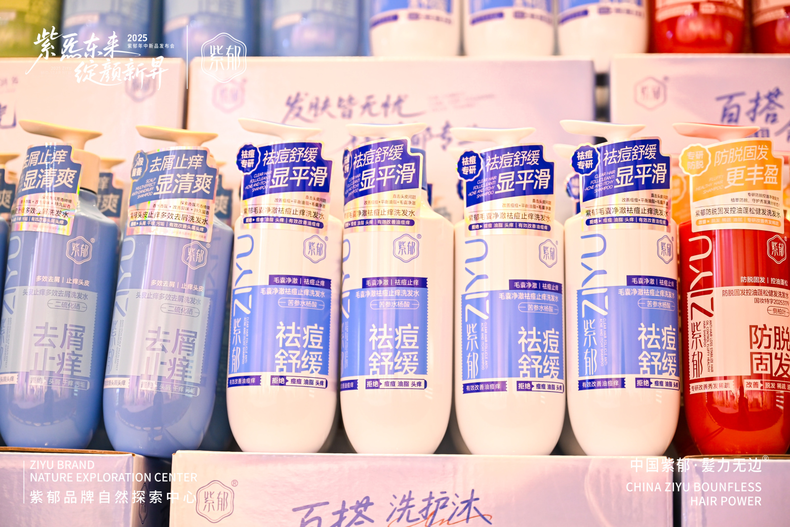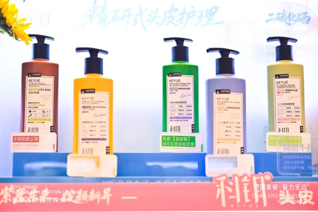 本次发布会焕新上市了紫郁品牌的经典系列产品,如紫郁经典洗头屑系列、初枧双舱黑科技洗护系列、初枧俪丝娅系列、科钥头皮科研专护系列、馥郁鲜花纯露养护系列等产品线。