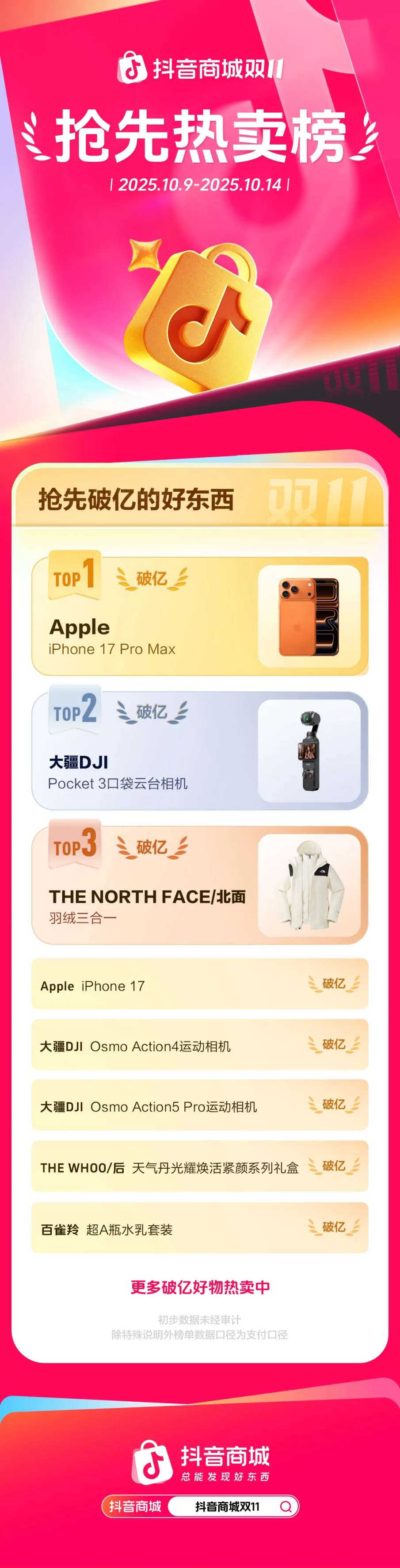 这些策略调整带来了显著成效。在抖音10月9日至14日的“抢先破亿的好东西”榜单中,百雀羚“超A瓶抗皱紧致淡纹套装”成为国货美妆首个跻身销售额破亿行列的品牌。