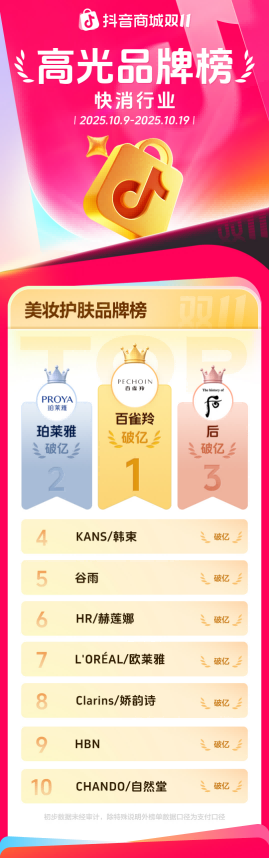 抖音已成为国货美妆与国际品牌较量的新战场,抖音的这份双11榜单清晰地揭示了这一趋势。