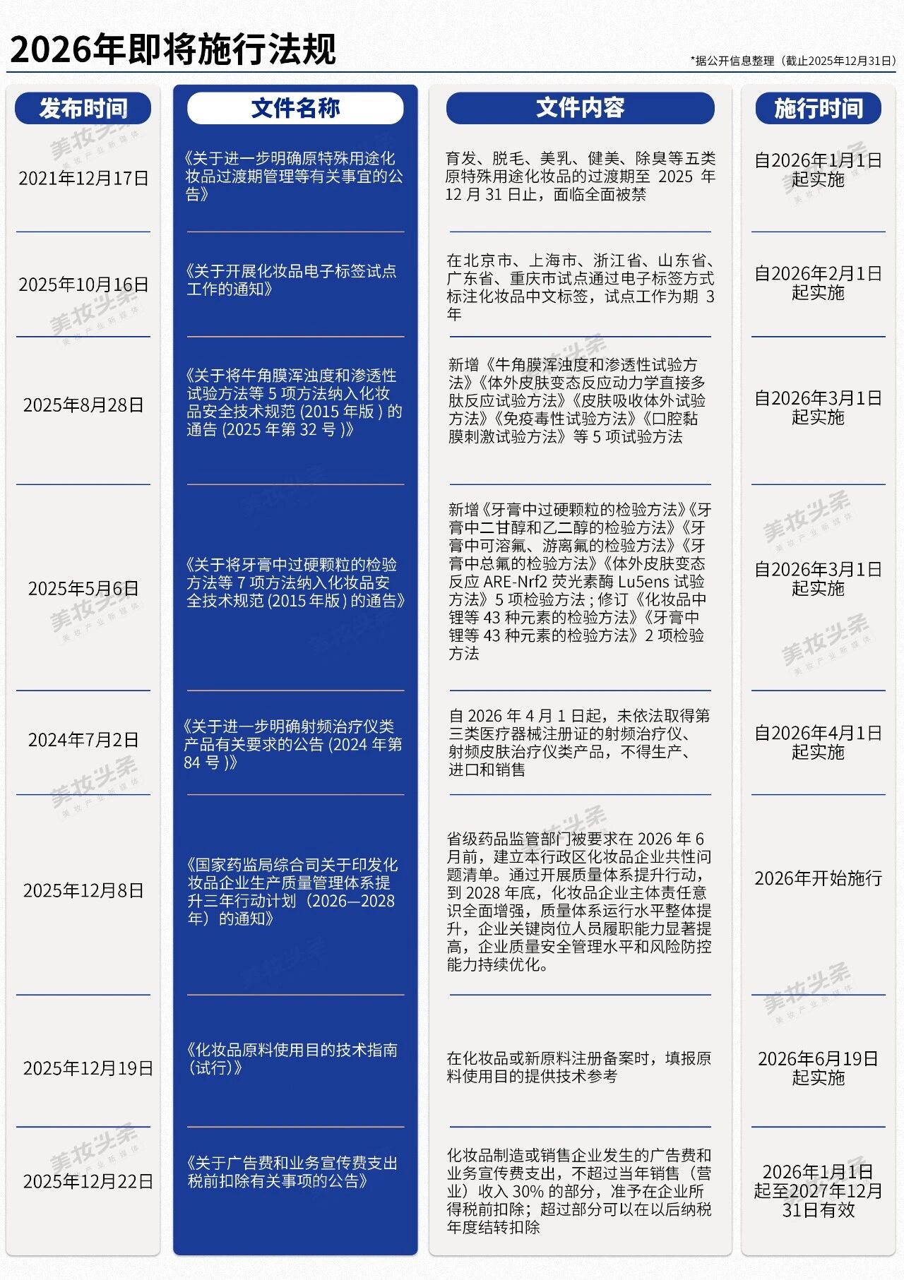 从原料、成分、技术、检验方法的丰富完善,到产品功效宣称、营销红线的划定,再到传统品类“退场”倒计时,多维度法规监管趋严,无不在昭示着一个更为规范的美妆市场秩序正在加速形成。