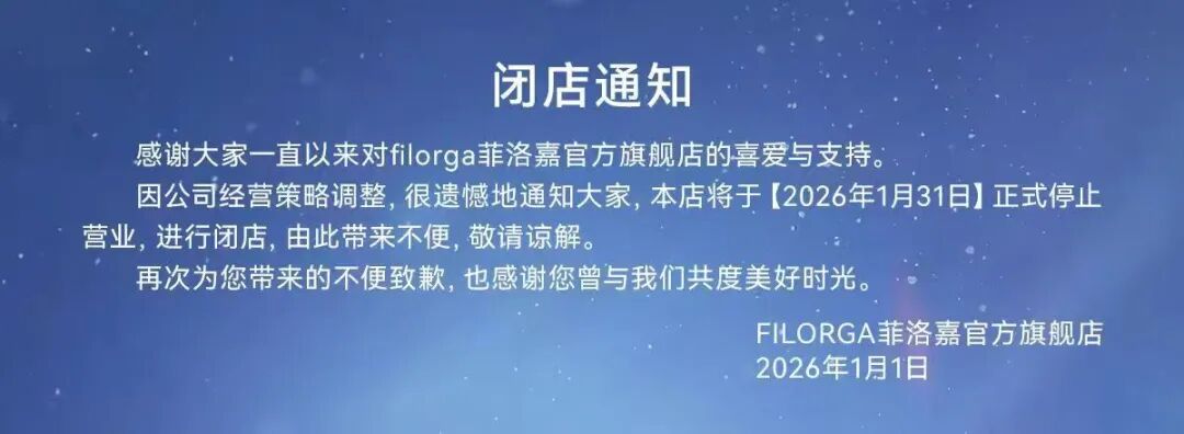 1月1日,filorga菲洛嘉突然宣布关闭中国天猫官方旗舰店,将于1月31日正式停止营业。这波操作让不少人直呼意外“想到谁,也想不到是菲洛嘉啊。”