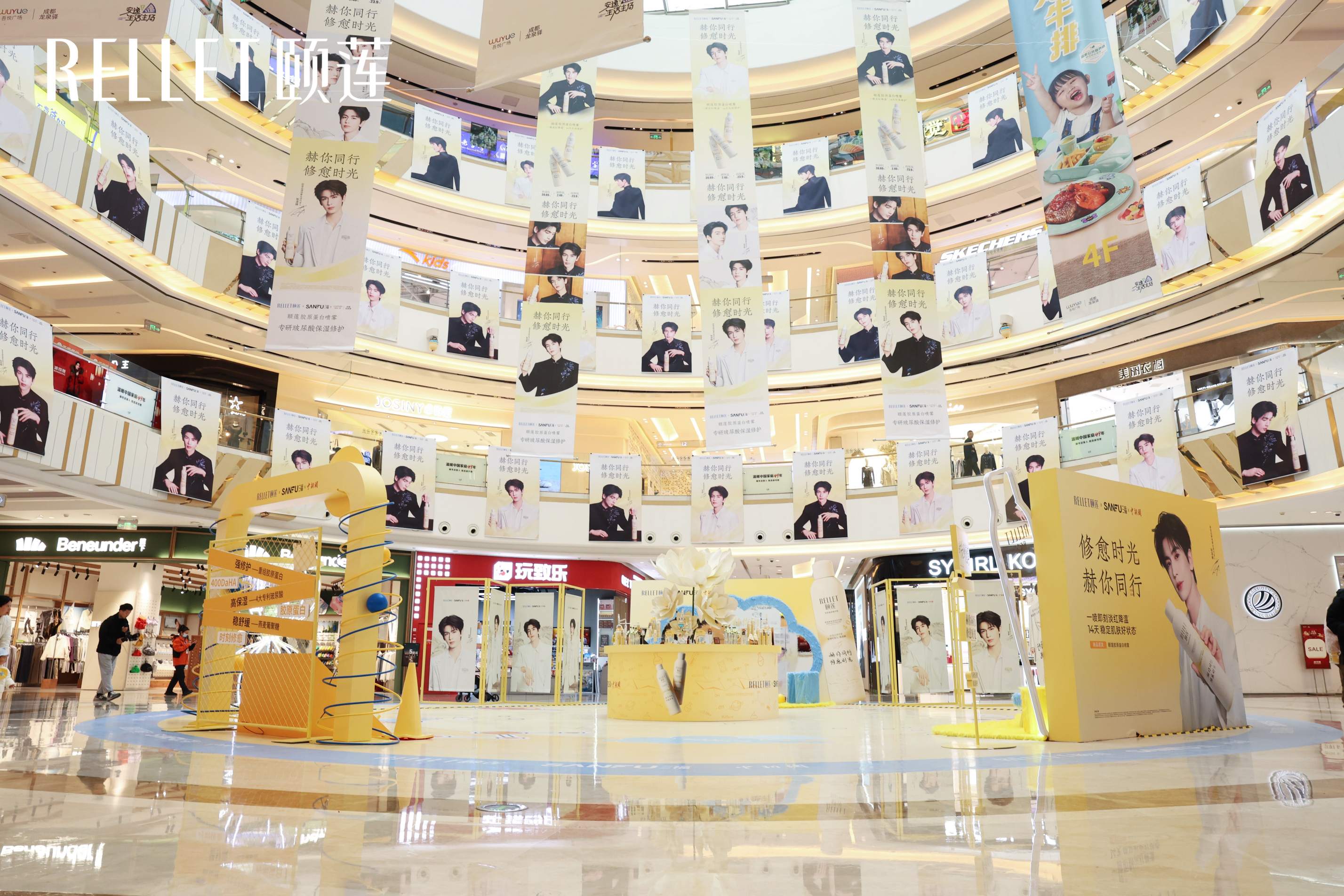 不止于线上声量狂欢,颐莲在线下的布局也可圈可点。于广州、武汉、西安等十余座城市,品牌掀起了一场关于“空间重塑”的营销革命。